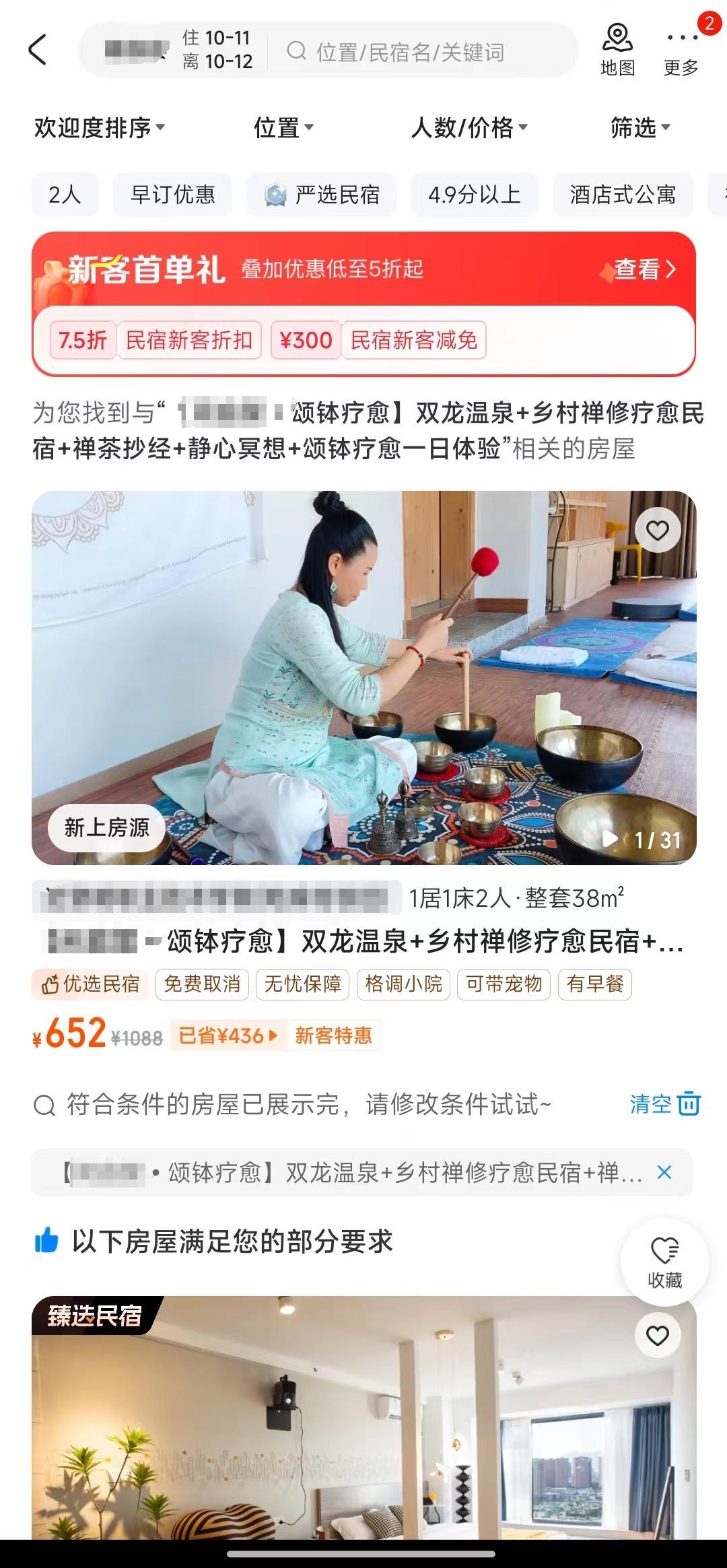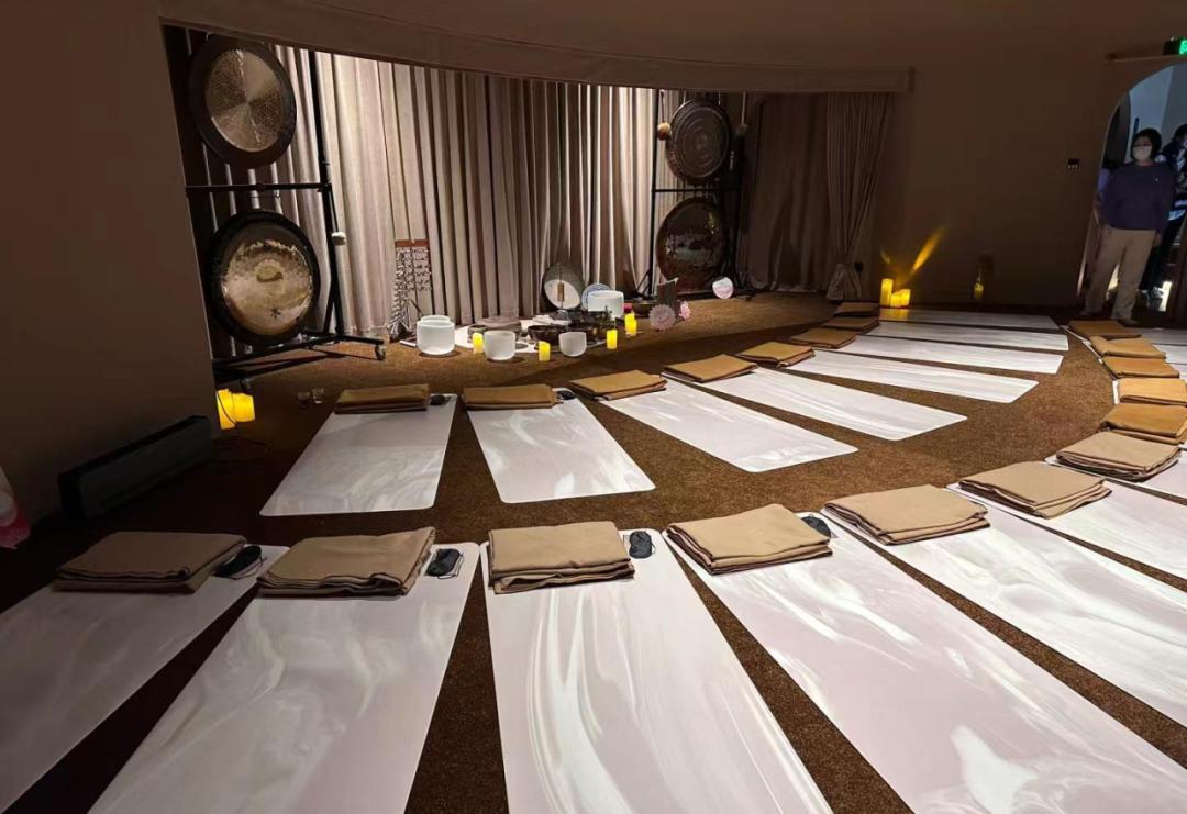 “我们所有人被挤在一个小地方里,场地外围隔壁就是工地,那个老师就在台上敲钵,我们就一边闭着眼,一边听着电钻施工的声音,”听以前参加过音疗的一个宝妈说,以前这种音疗一般都是在一个开放式的环境里的,或许因为是国庆,户外别墅价格太贵,就选了这么一个场地,“她说这也是她参加过的最差的一次。”