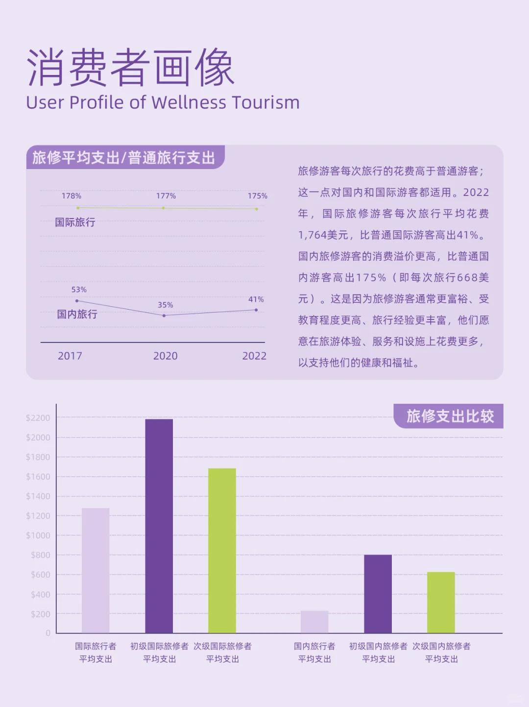 据精练GymSquare发布的《中国旅修行业研究报告》指出,全球旅修市场的规模现已达到6510亿美元,主要消费群体集中在欧美国家。相比之下,尽管亚太地区尤其是中国市场在这一领域的恢复速度较慢,但这同时也预示着该区域存在着广阔的增长空间。