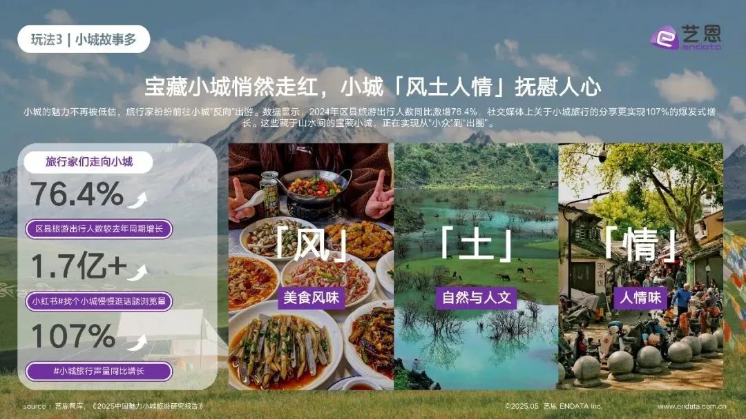 艺恩智库发布的《2025中国魅力小城旅游研究报告》显示,过去一年区县旅游出行人数同比增长 76.4%,齐齐哈尔、慈溪、商丘等小城旅游热度持续升高,成为游客首选。