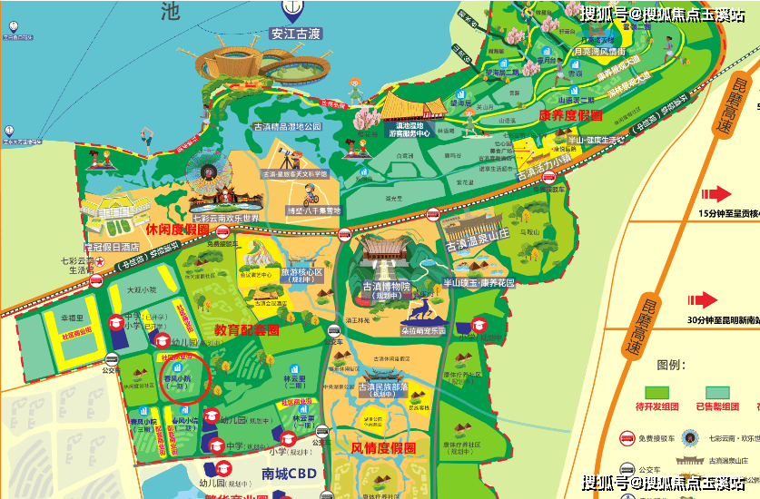 文化配套:古滇博物院旅游配套:七彩云南·欢乐世界、皇冠假日酒店、洲际酒店、万怡酒店。