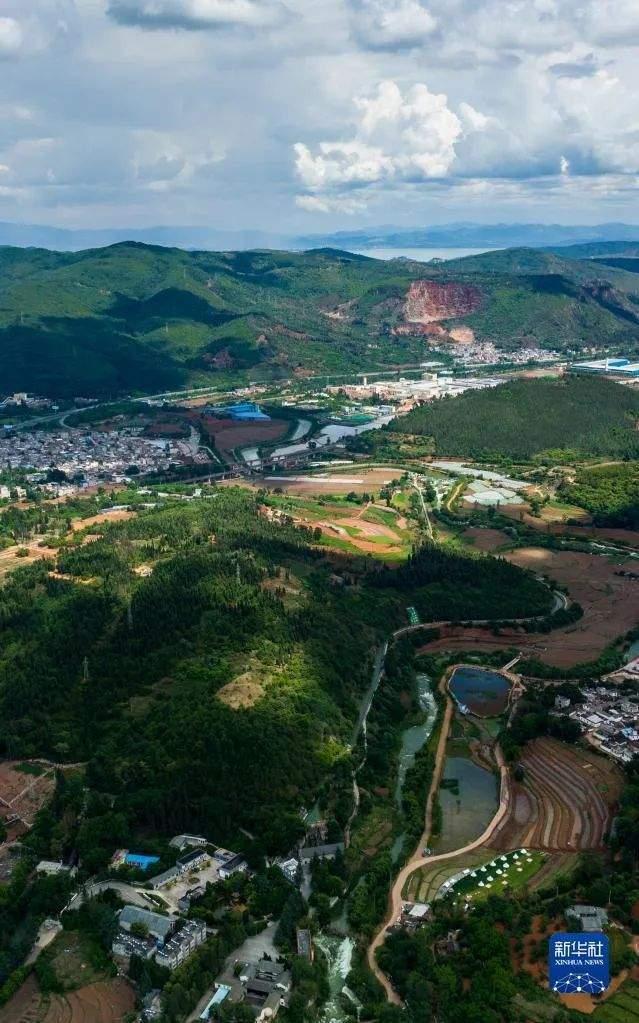 (滇越铁路正式通车那年(1910),发电机运了进来,中国第一个水电站石龙坝水电站建成,带动了一批工业的发展,如云南第一座自来水厂“翠湖九龙池”,如今仍是昆明的标志性企业。图为石龙坝水电站航拍图,远处是滇池。111岁的石龙坝水电站,如今仍在发挥光和热。摄影@新华社·江文耀)