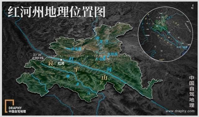 这条红色的大河,自大理巍山县奔涌而出,来到红河州将其“大卸两块”:东北面为滇东高原区,西南面为横断山纵谷的哀牢山区。