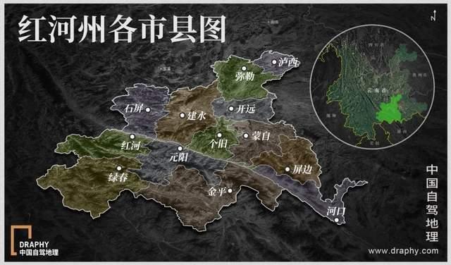 红河州行政区划图,制图@《中国自驾地理》