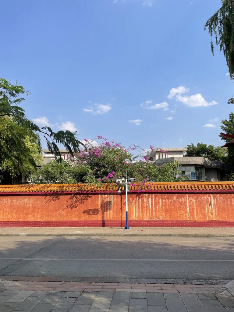 红墙绿树蓝天白云
