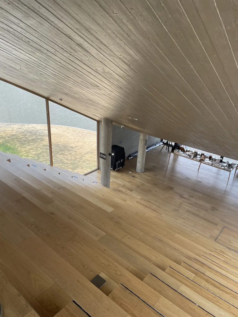 超大的阶梯座位,落地窗外就是南湖风景