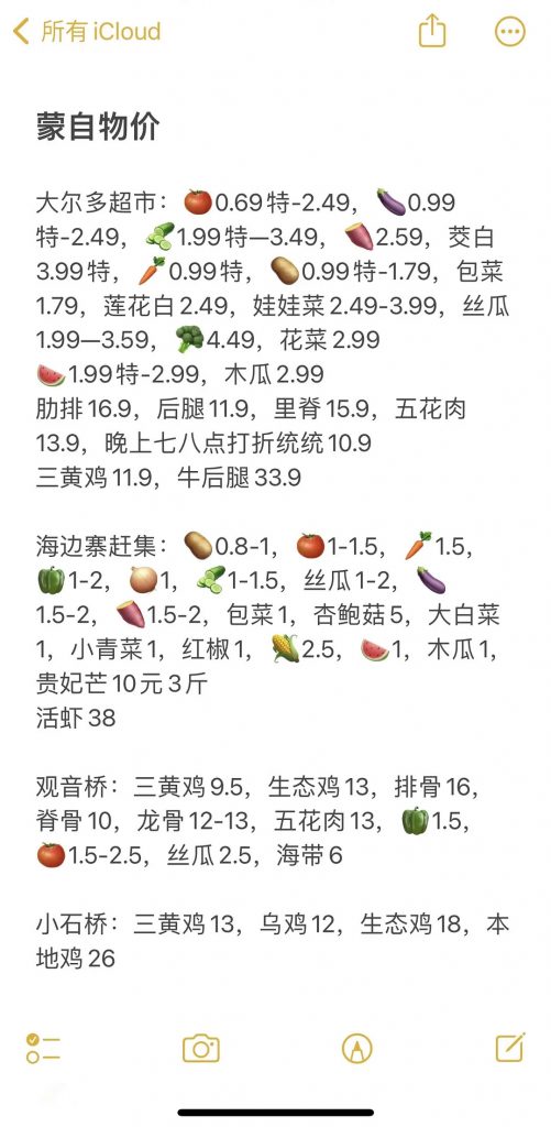 划重点:蔬菜是海边寨赶集最便宜,超市打折也很便宜但不是每天有;水果是大树寨最丰富新鲜最有性价比;肉类是每天晚上超市打折最实惠,观音桥也便宜。